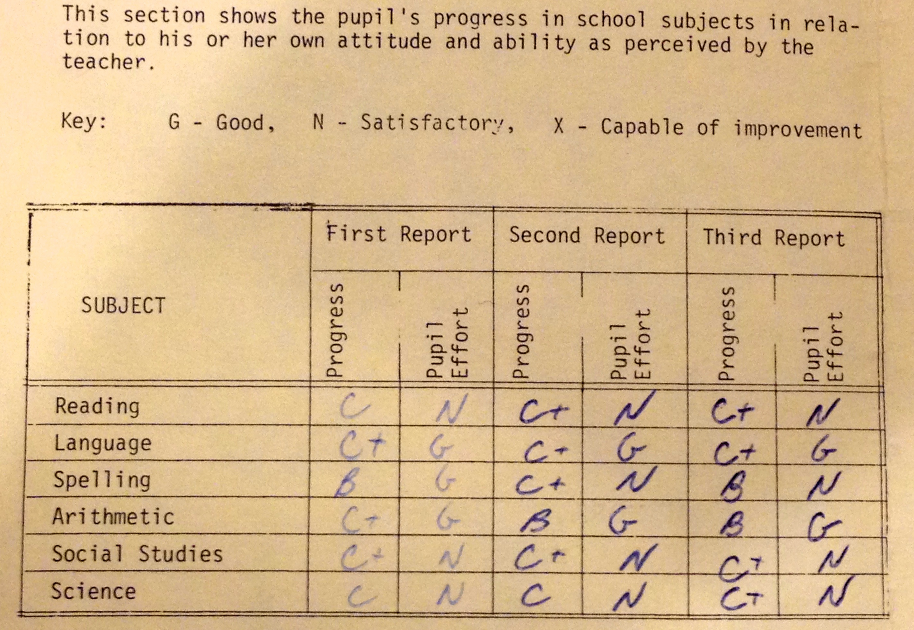 You were my seventh-grade teacher. And my older brother’s teacher before me. I appreciate your insight into the grades you assigned and how you think they defined your students.