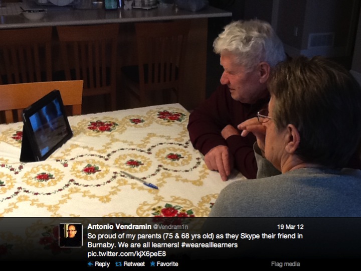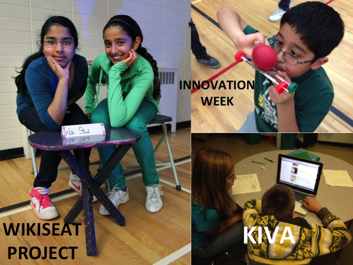 Tonight I’ll be talking about WHY change isn’t a dirty word, the CHALLENGES to change, and some EXAMPLES of change at my own school. Mostly, I’d like YOU to consider the role you all play in being change agents in YOUR school.I’m INSPIRED by change! Much of this INSPIRATION comes from my Dad. This is a picture of him in Naples in 1960 on his way to Canada. He came by HIMSELF, with NOTHING, and not a word of English. When I am afraid of risk, I think of him!My parents continue to INSPIRE me everyday. Here they are SKYPING with their friends. Their connection to family and friends remains strong, and THAT’S why they have changed, adapted, taken risks.I believe in the power of change and that kids are depending on our EVOLUTION to stay relevant. Signs are everywhere that we need to change. When the Twitter hashtag “THINGS I HATE ABOUT SCHOOL” trends, what are kids really trying to tell us?If we resist change in favour of the STATUS QUO, we need to ask if we are OK with only about HALF of our learners actually being engaged in school? The better QUESTION to ask is: Why is CHANGE HARD for some?I think that MINDSETS have much to do with it. For those with FIXED MINDSETS, change and risk create the possibility for failure and failure reflects on intellect and ability. A FIXED MINDSET does not allow people the luxury of becoming. They already have TO BE!As Reddit’s co-founder poetically stated, “SUCKING IS THE FIRST STEP TO BEING SORTA GOOD AT SOMETHING.” Those with a GROWTH MINDSET believe in progression and that taking risks and making mistakes aren’t signs of weakness, but part of learning and continually getting better.Another challenge to change is SAFETY…a basic human need. Change pushes us outside our comfort zone. That’s why relationships, teams, and the support of our colleagues and administrators are crucial.And if you are dipping your toe into the water, getting help from someone like this – “Mr. Awesome” – can be the most intimidating thing. What I think people want to hear is: just take the first step and I’ll take it with you!Here is a picture of a group of teachers from Vanier learning about FreshGrade. Laura is the one with the purple iPad – she’s a first year teacher and she was facilitating this session. She helped her colleagues feel safe in facing change.I think the final challenge to change is making the PURPOSE for change CLEAR. I love this QUOTE: “He who has a WHY to live for can bear almost any HOW.” I believe, people will go to great lengths and embrace change when they have a strong sense of purpose.This is what desks looked like at our school. The deeper the holes drilled into desks the deeper the level of disengagement. What were kids telling us? I’d like to talk about 3 changes I’ve seen since many of our teachers began to connect with each other and the world.We have started to focus on CREATION over CONSUMPTION And teachers are SAYING YES TO STUDENT INTERESTS and allowing them to do work that is personally meaningful. Here are some examples you can try at YOUR school:• WIKISEAT -Yes, students used power tools and created their own furniture. • INNOVATION WEEK-Yes, students spent a whole week learning about whatever they were interested in. • And YES, we are KIVA NINJAS too! – 53 loans worth over $1300 so far!Our LEARNING COMMONS is supported by a gifted Teacher-Librarian, and it’s a place where teachers collaborate, and students create and connect with the world. Genius Hour says YES to student interests. A student told us “You don’t want to learn your teacher’s passion, you want to learn your passion.”Students participate in INQUIRY. Students dig into deep questions that interest them. These boys actually got lost in learning while, believe it or not, everyone else was lined up to go to P.E.Communicating Student Learning. We asked: • Isn’t ongoing descriptive feedback more valuable to student learning than letter grades? • Can we do a better job of communicating learning with students and parents? YES WE CAN!