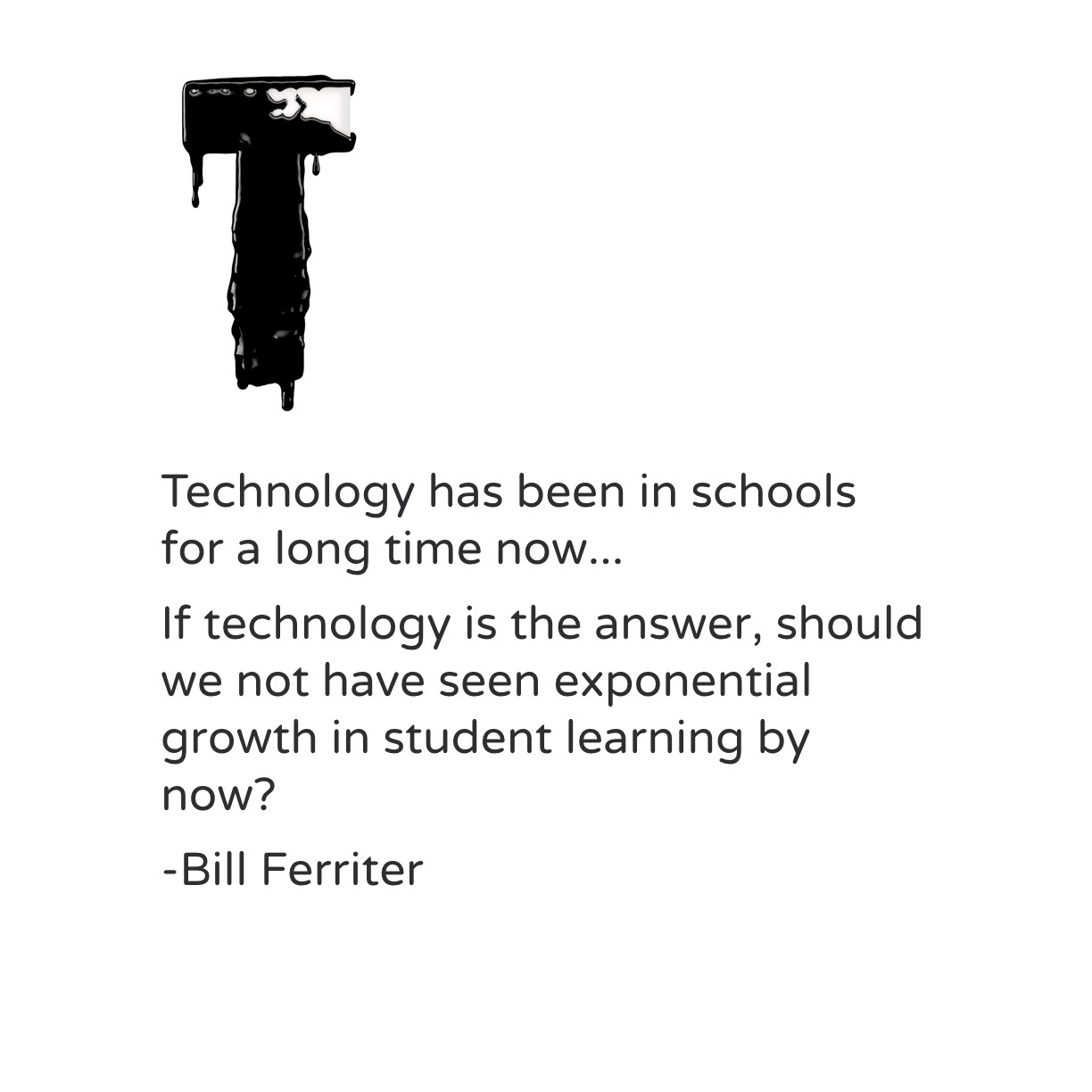 I also believe that technology is not THE answer. Using technology to simply replicate what we’ve always done in classrooms, is a waste of valuable funding and doesn’t significantly move student learning forward. Technology cannot save bad teaching or poorly designed learning experiences!