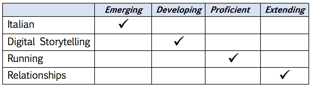 One year. That’s a long time (to not post a blog). But today I feel compelled to write about some of my thinking around proficiency scales and particularly the weight some choose to put on single words, short descriptors, or even numbers, letters or symbols to describe the very complex task of assessing learning. Where there is an over-reliance of these things, our attention can be drawn away from what is most important. To me, that’s: